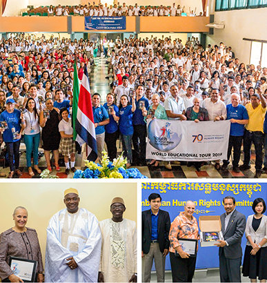 I 15 år har ordförande för internationella Ungdomar för mänskliga rättigheter, dr Mary Shuttleworth, varje år rest världen över under sin undervisningsvärldsturné. Årets resa på 5 600 mil genom sju länder gjordes för att fira 70‑årsdagen av FN:s allmänna förklaring om de mänskliga rättigheterna (UDHR), som antogs den 10 december 1948.